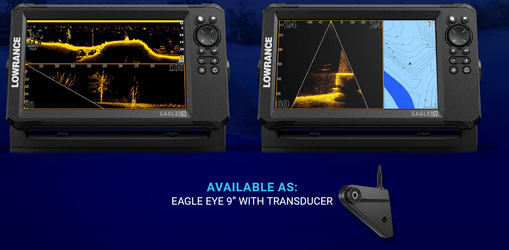 Lowrance EagleEye 9 má v sonde (sonda je súčasťou balenia) okrem klasického sonarového snímania a DownScan aj Live snímanie pred loď a pod loď ale s menším uhlom snímania 45° x cca 18°.
