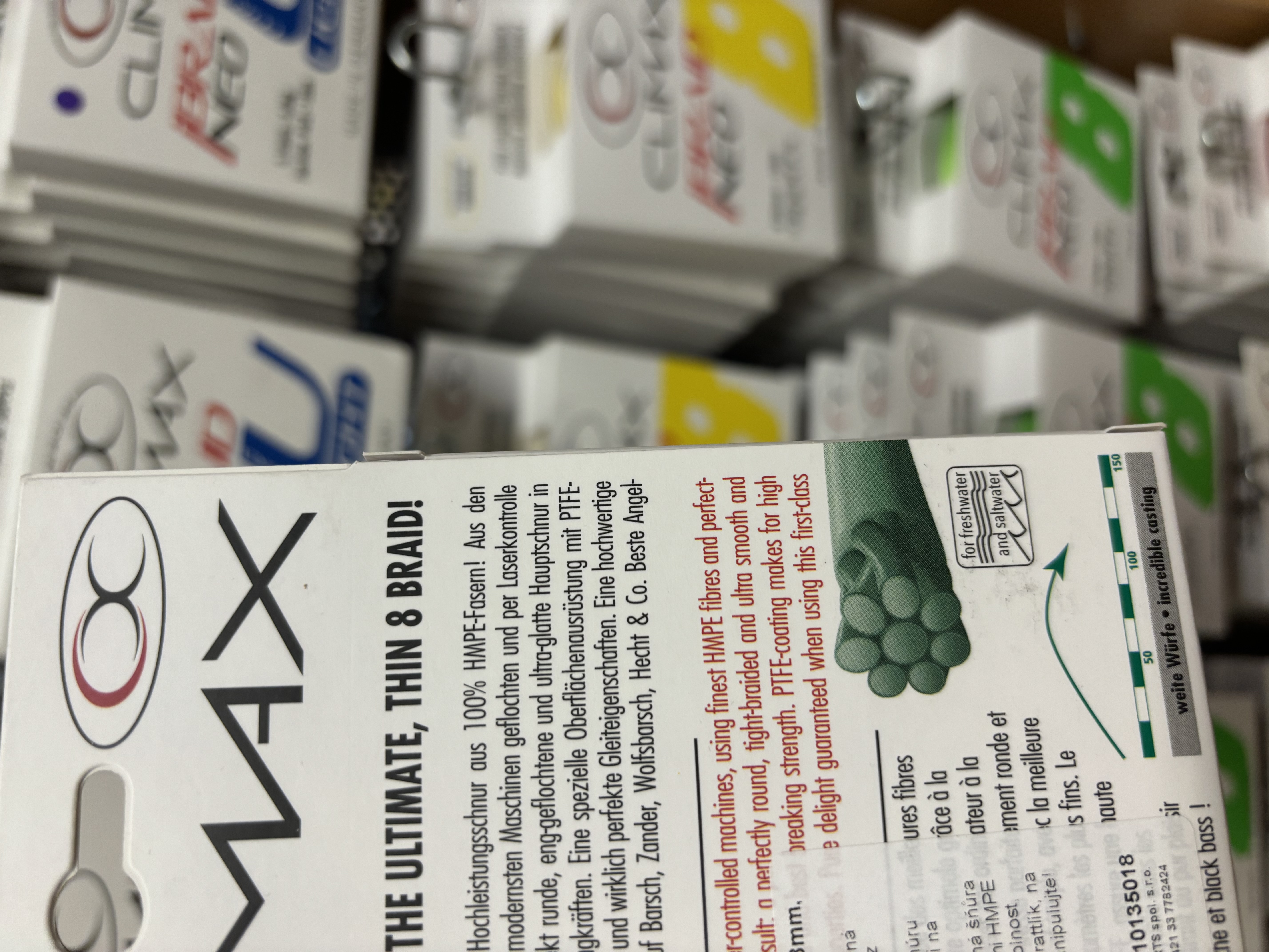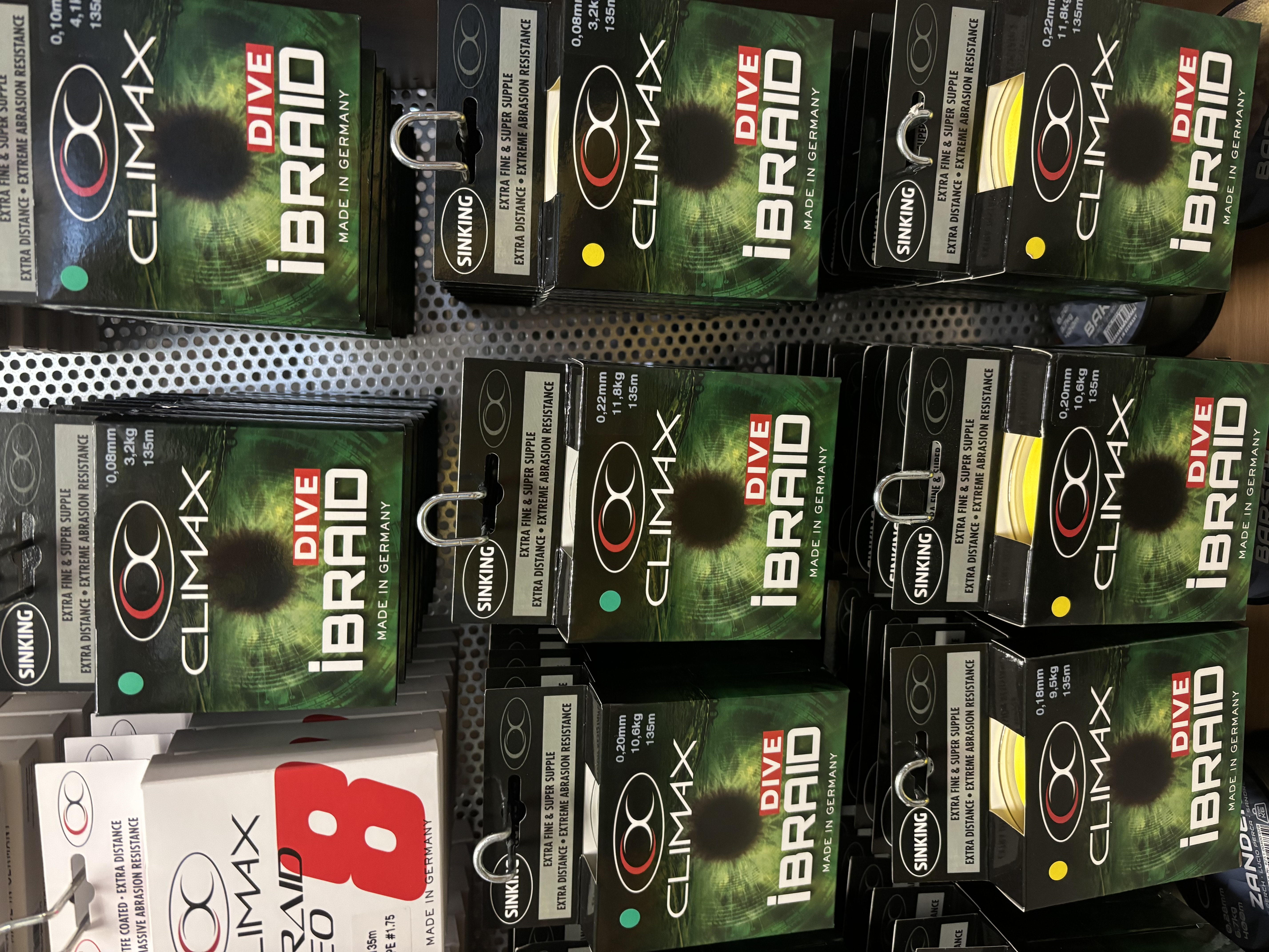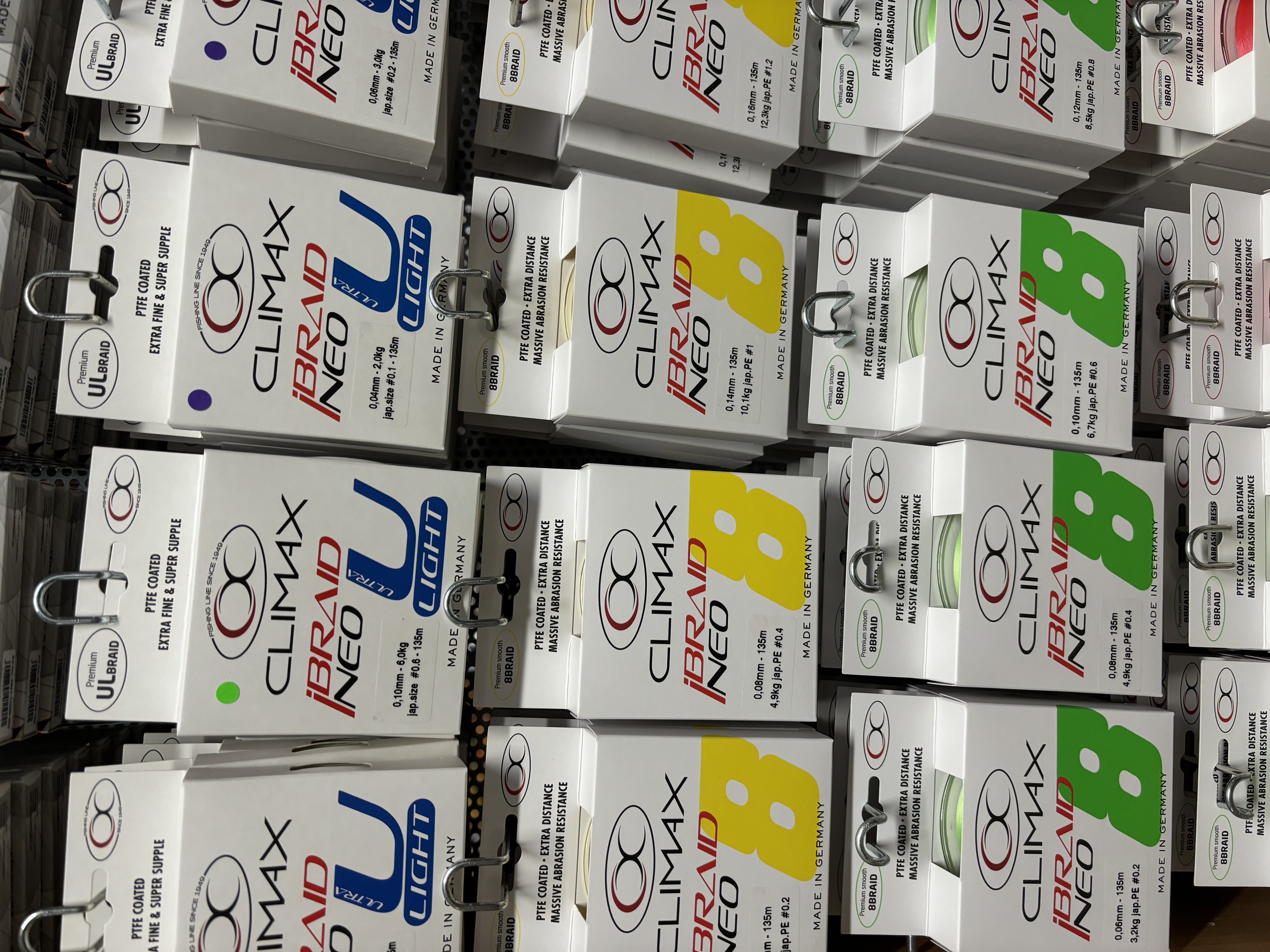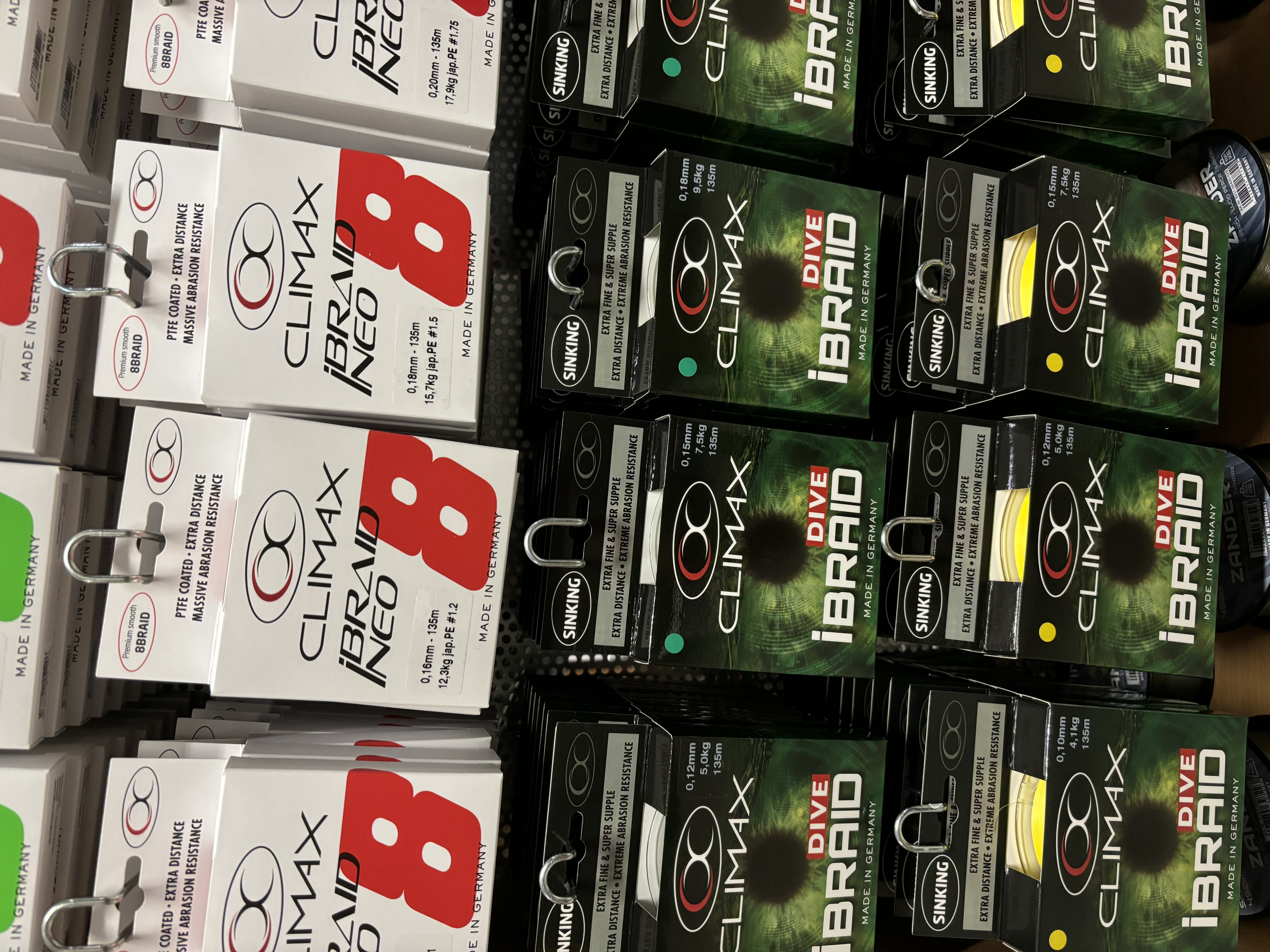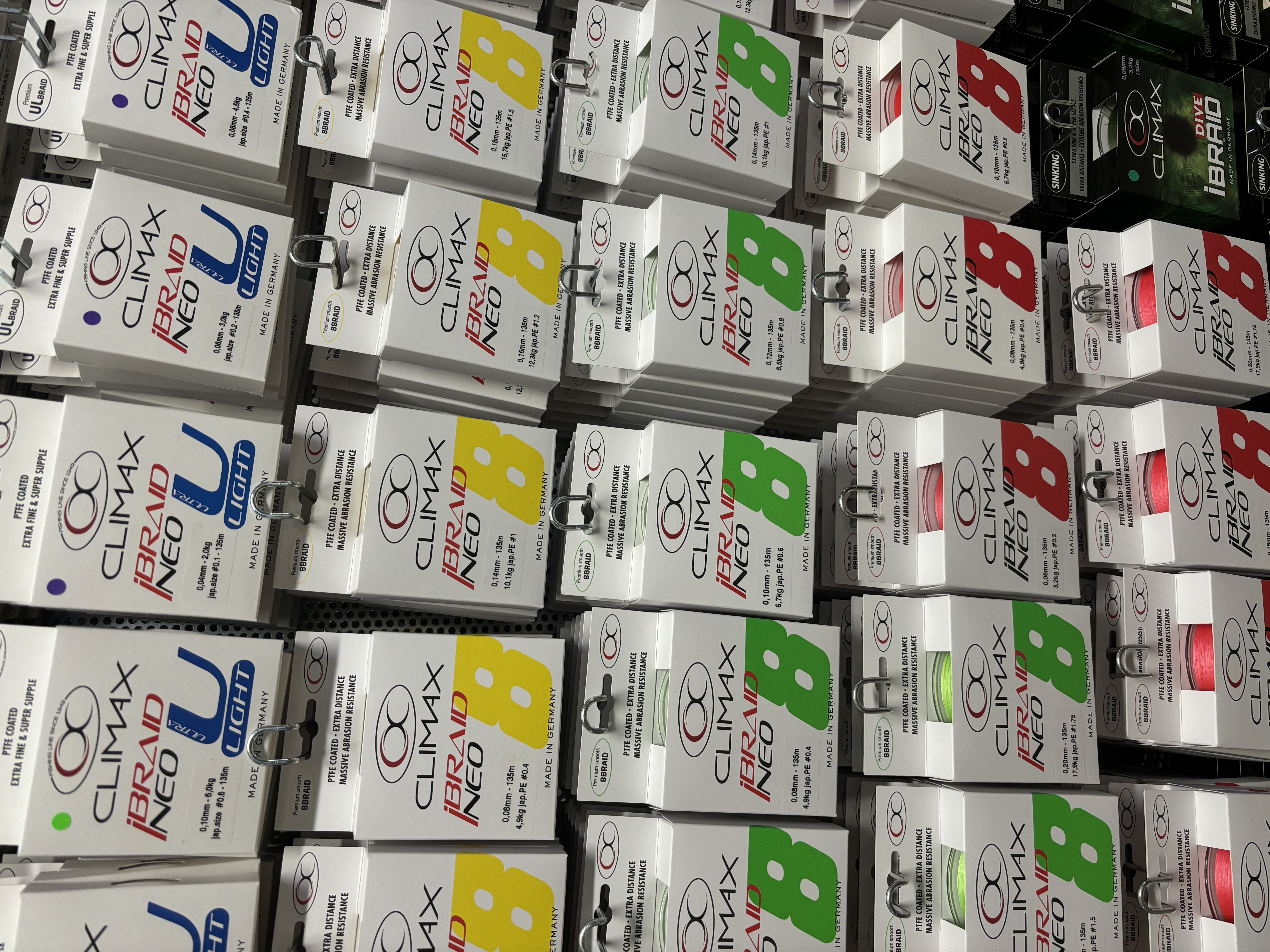• Climax iBraid, iBraid NEO, UltraRed, Mach 12 Braid – šnúry vyrábané z viacerých HMPE alebo Spectra vlákien, zaručujú okrúhly profil, hladkosť a extrémnu pevnosť.