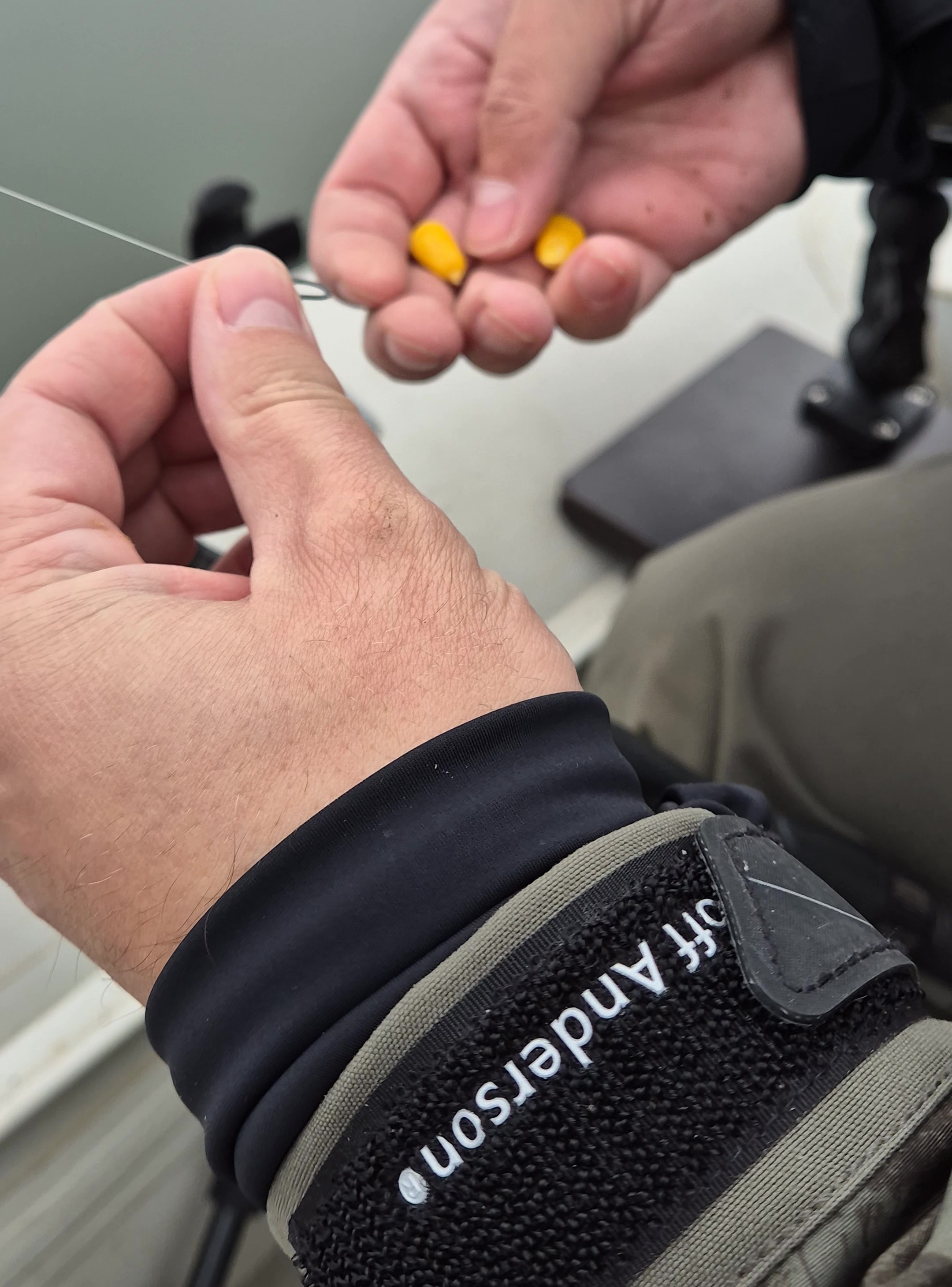 • Použitý bol plavák, 2g záťaž a nástraha s jedným zrnkom kukurice.