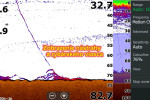 alebo DownScan so zapnutou funkciou FishReveal kde Vám bude v zobrazení DownScan sonar vykresľovať oblúky rýb vo výraznej farebnej palete.
