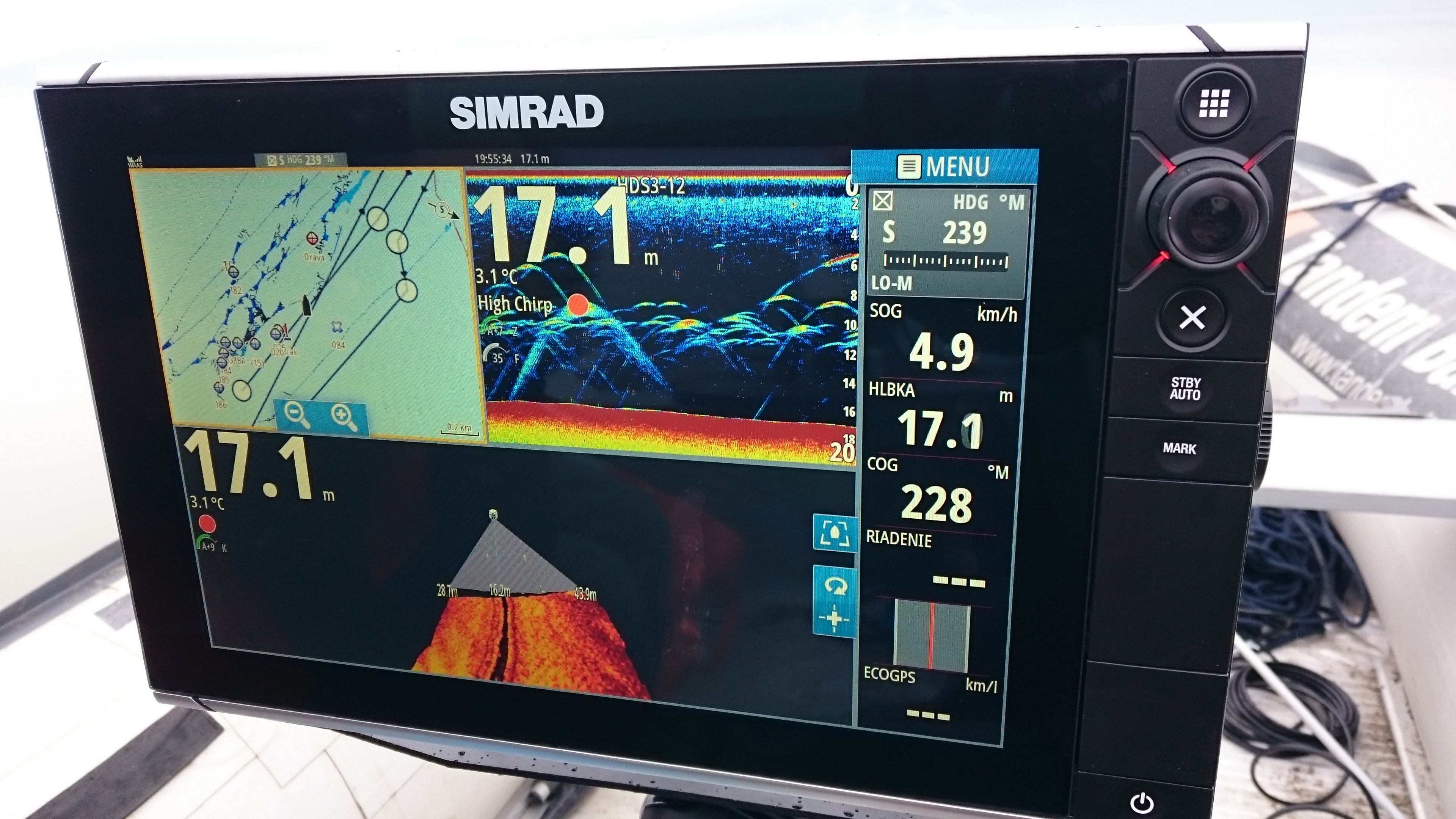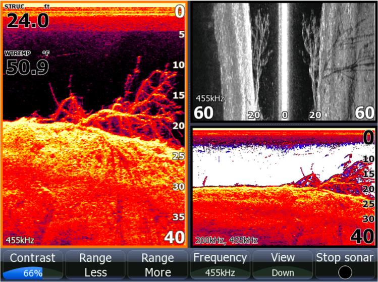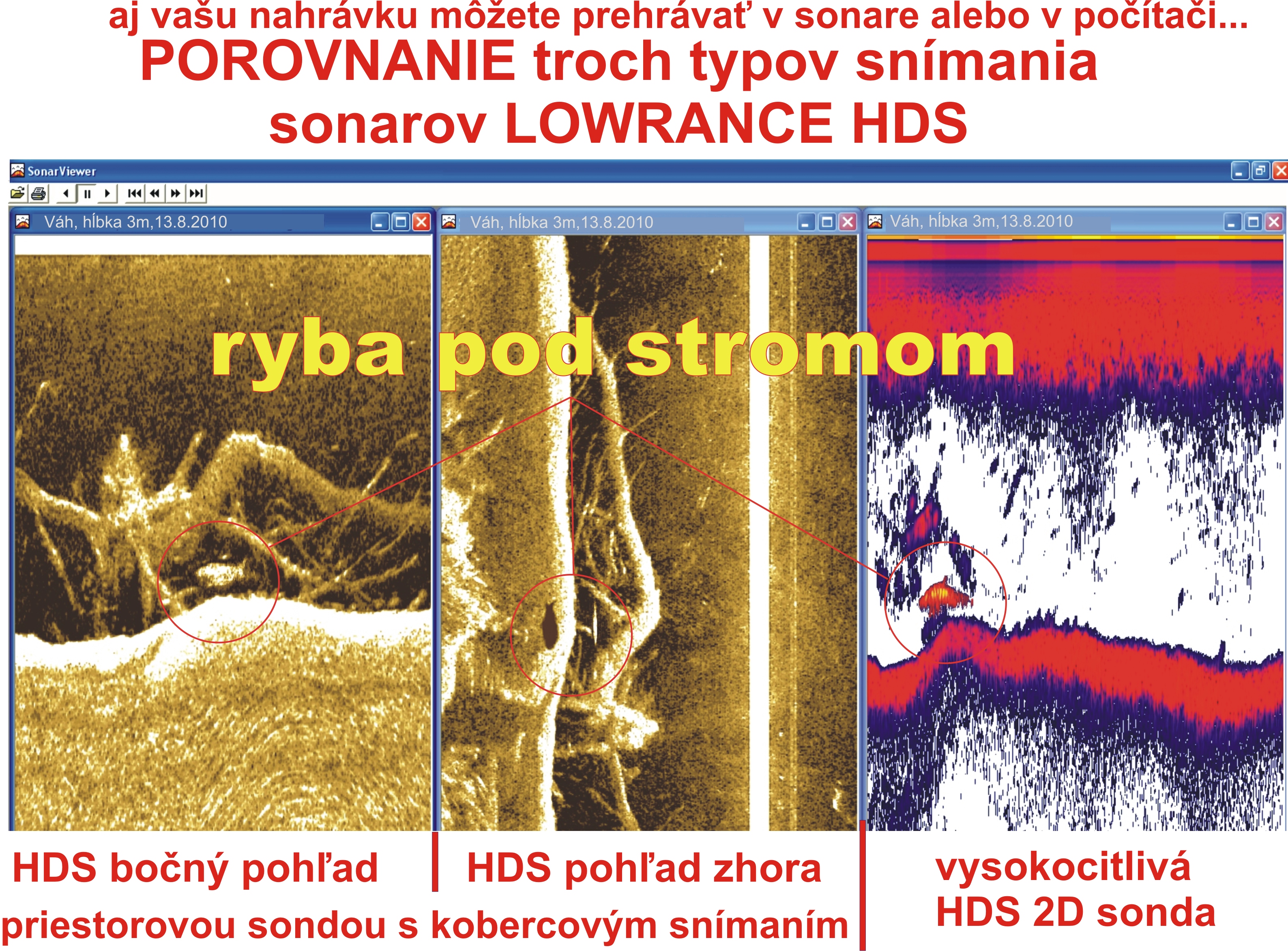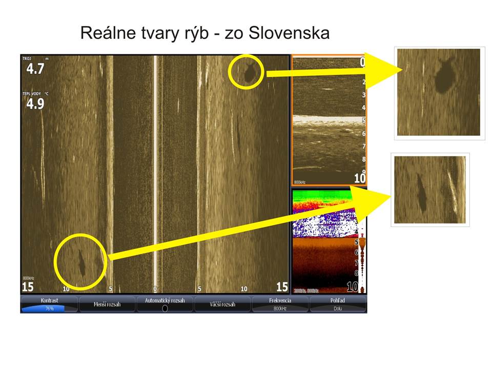 Odporúčame pri snímaní sonaru používať súčasne na rozdelenej obrazovke klasický sonar a DownScan,
