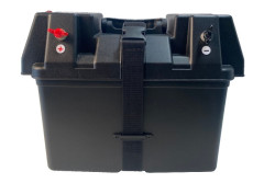 Praktický box pre akumulátory 12V do 100Ah s kabelážou, svorkami a zásuvkami 12V a USB. Do veka je možné inštalovať menšiu nabíjačku, menič alebo solárny regulátor a tým ďalej rozšíriť možnosti zariadenia.