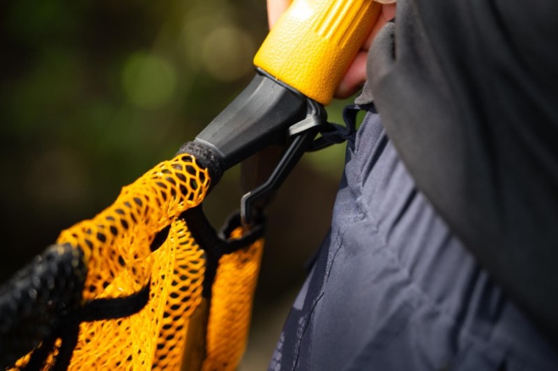 Podberák je vybavený praktickým háčikom a pevnou šnúrkou. Môžete ho jednoducho pripnúť na očko brodiacich nohavíc, na rybársku vestu alebo batoh, takže vám nezavadzia pri nahadzovaní, ale je okamžite dostupný.