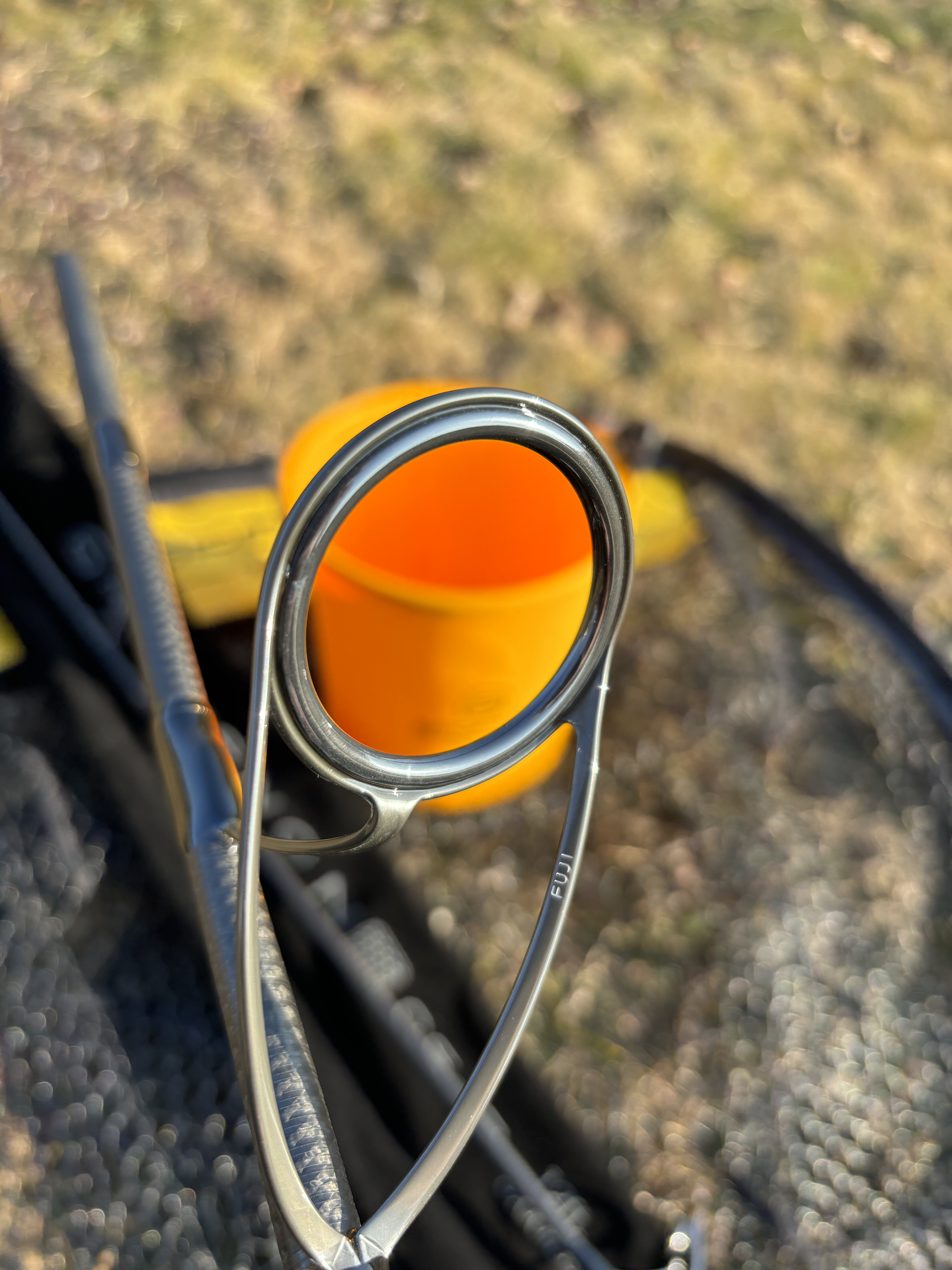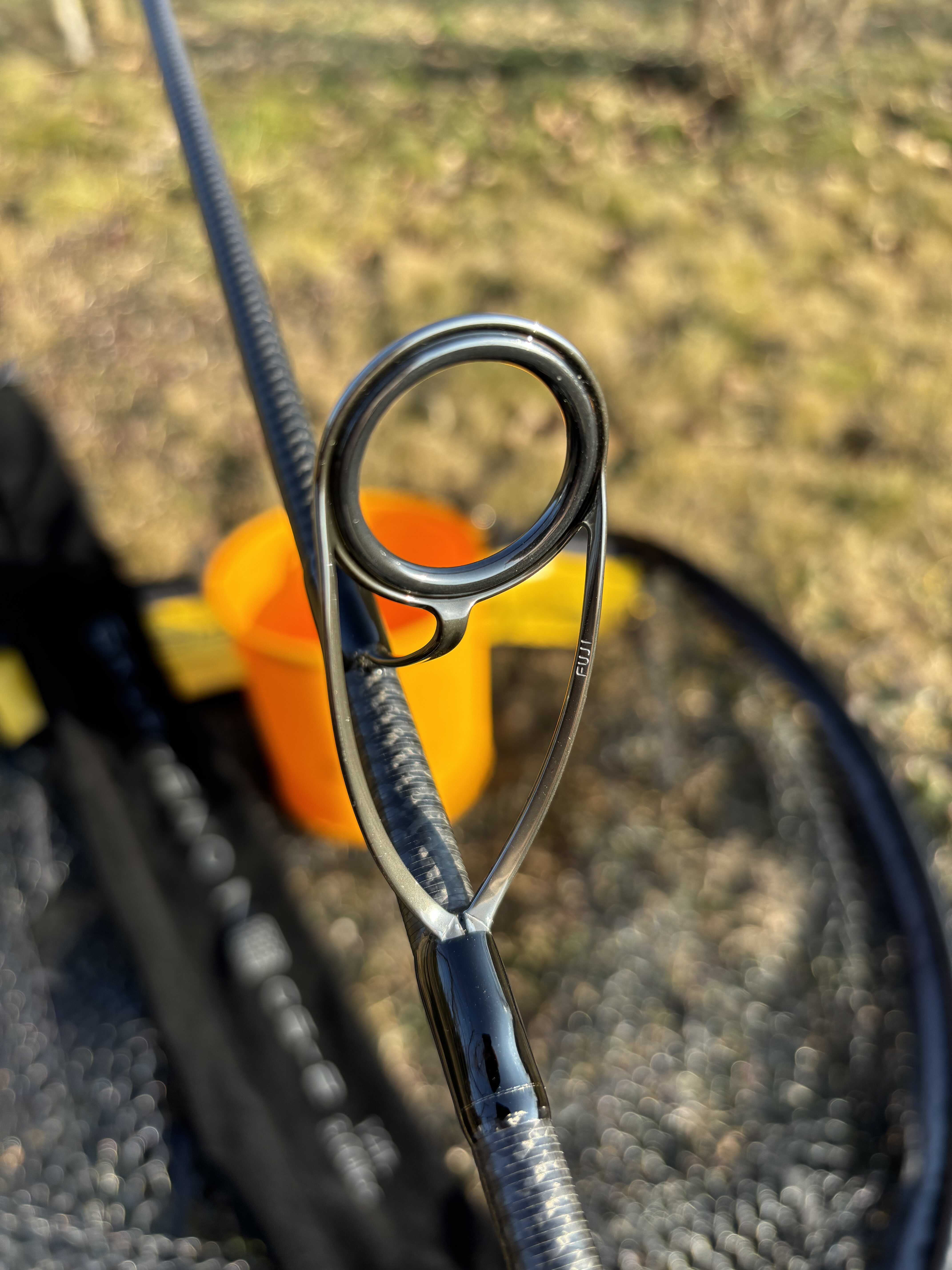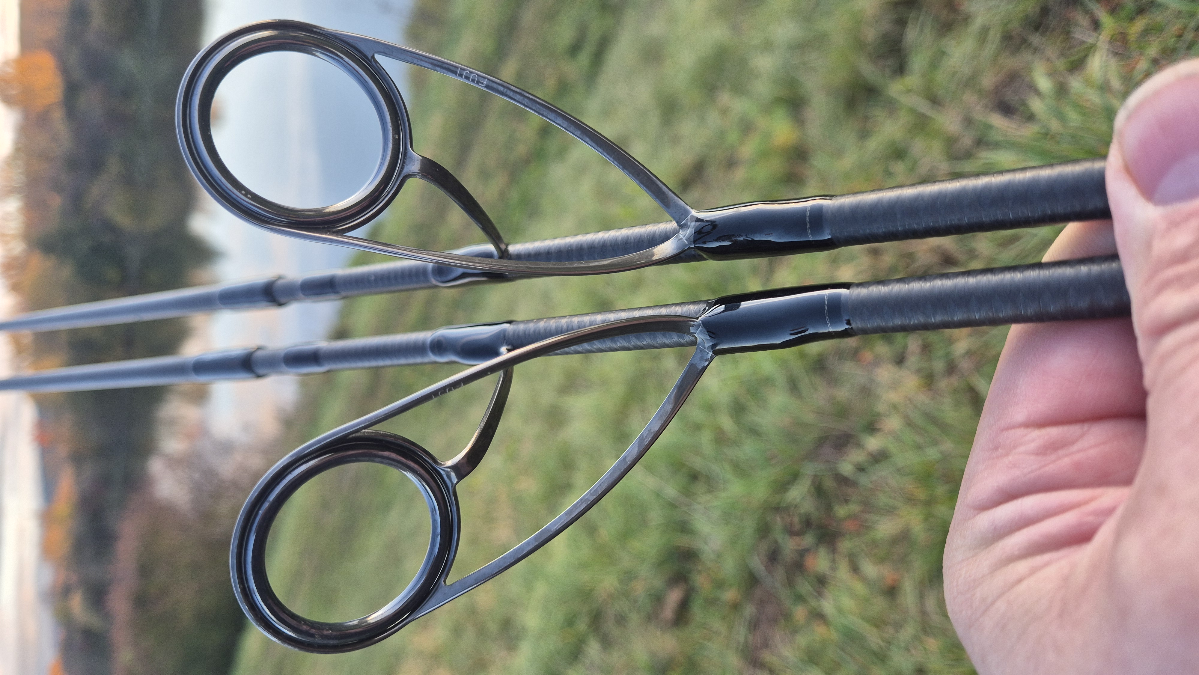 Od sedla navijaku prechádzame smerom hore po titánovo šedom blanku k prvému očku, ktoré má rozmer 39,23 mm a od sedla navijaku je vzdialené 72 cm. Očká sú v titánovej matnej farbe a samozrejme nemožu byť žiadne iné ako FUJI K Style, ktoré sú upevnené k prútu čiernym viazaním.