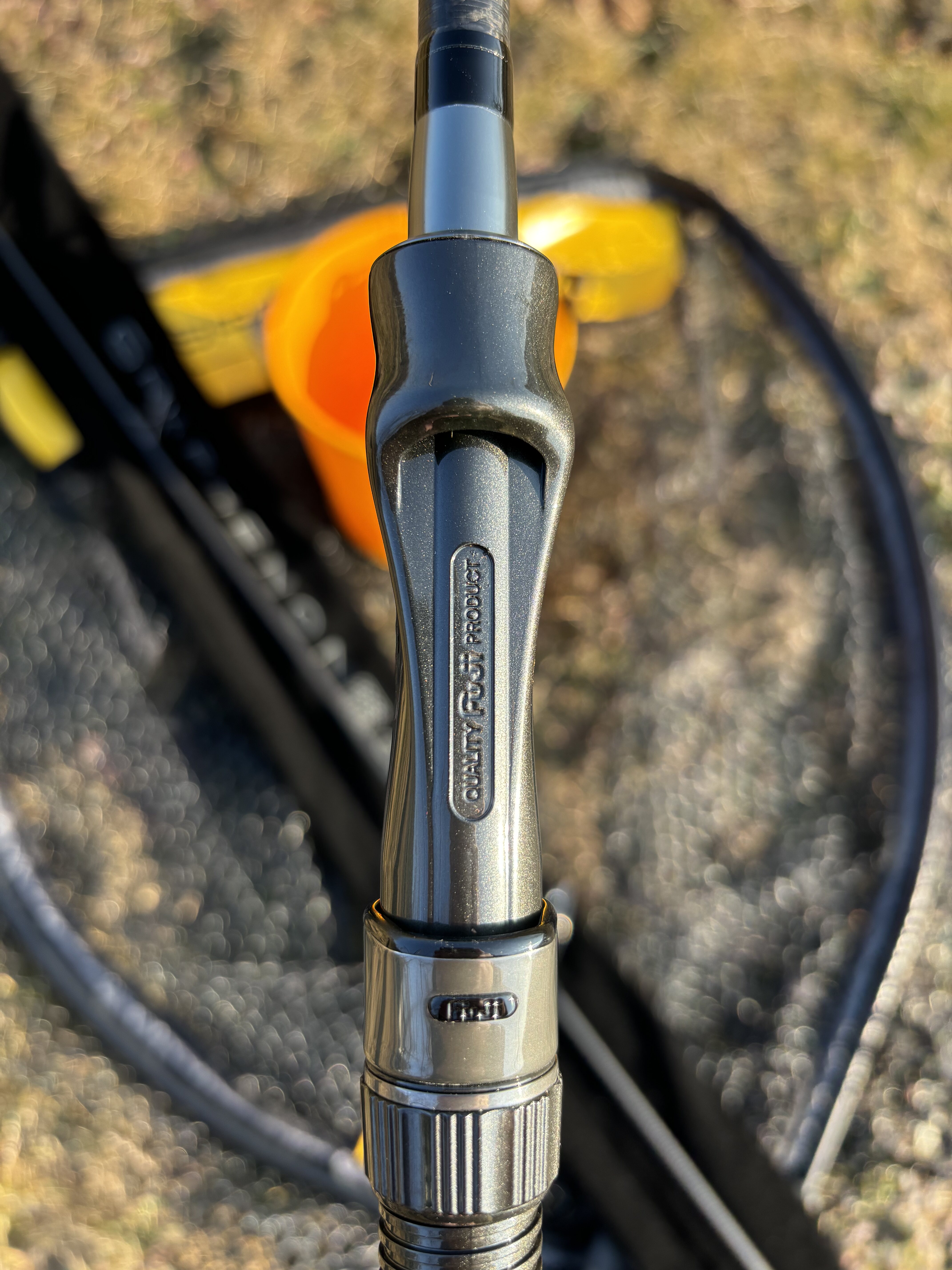 Neskutočne štíhly blank iba 13,44 mm v mieste rukoväte a nad sedlom navijaku je hrúbka len 10,86 mm. Celková váha prútu je niečo viac ako 250g. Áno, píšem stále o kaprovom prúte, nie o prívlačovom.